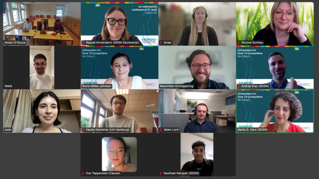 From June 17 to 24, 2025, student teams from across the globe participated in the semi-final pitch week of the fourth edition of the "Universities for Goal 13" competition, co-organized by the UN Sustainable Development Solutions Network (SDSN) and Siemens Energy. The competition mobilizes university students to propose practical, multidisciplinary, and collaborative solutions to climate action (SDG 13) and the global energy transition. Launched in October 2024, the fourth edition attracted a broad range of proposals from students eager to make a difference.