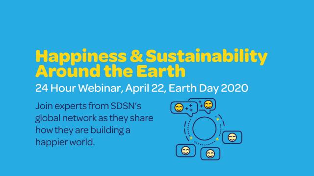 On the 50th anniversary of Earth Day, celebrated across the globe on Wednesday, April 22, the Sustainable Development Solutions Network (SDSN) hosted its first global 24-hour " Happiness and Sustainability around the Earth " webinar, bringing together experts and community leaders to discuss how sustainability and happiness are linked. In addition, implementation of the SDGs, as experienced throughout the various regions of the world by the national, regional and thematic networks, was explored. During the seminar, the impacts of the SARS-CoV-2 (COVID-19 disease) pandemic was addressed, as they pertained to the webinar’s themes.