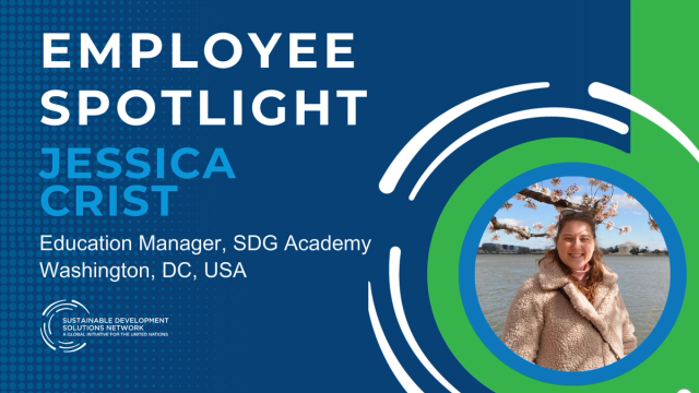 This month, we are spotlighting Jessica Crist, Education Manager for SDG Academy! We asked Jessica five questions about herself and her work with the SDSN. Read on to learn more.